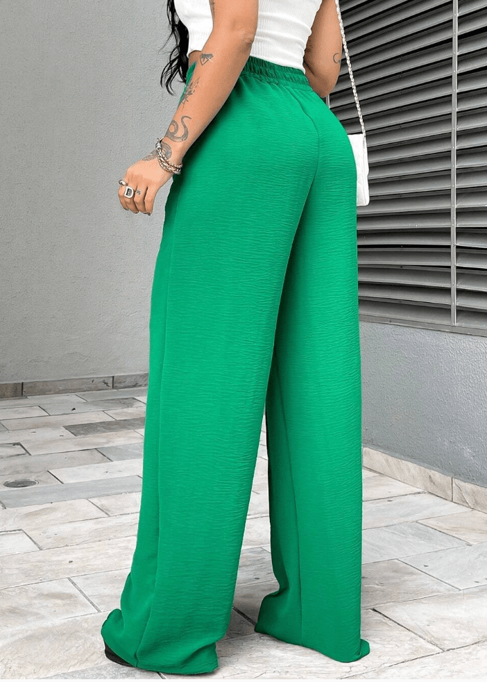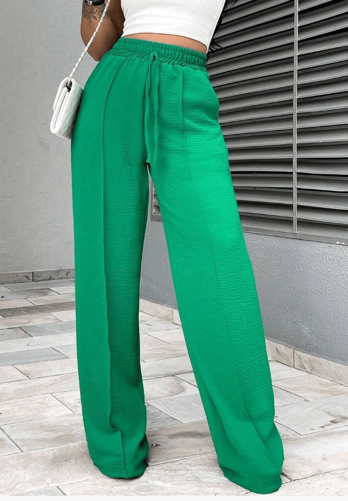 Aposte na Calça Pantalona Duna Cintura Alta e desfrute de um estilo leve, fresco e confortável em qualquer época do ano! Confeccionada em tecido leve e fluido, essa calça garante praticidade para o dia a dia. A cintura alta modela a silhueta e o elástico proporciona um ajuste perfeito ao corpo. O bolso frontal é um detalhe funcional que agrega praticidade à peça.